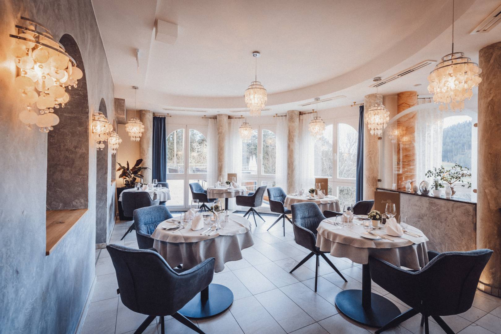 Doch auch bei Schmuddelwetter haben wir ein paar schöne Plätzchen mit Blick in die umliegende Natur. Zum Beispiel am Zweiertischchen in unserem Wintergarten, in den bequemen Loungesesseln in der Hotelhalle oder in unserem gemütlich eingerichteten Kaminzimmer.